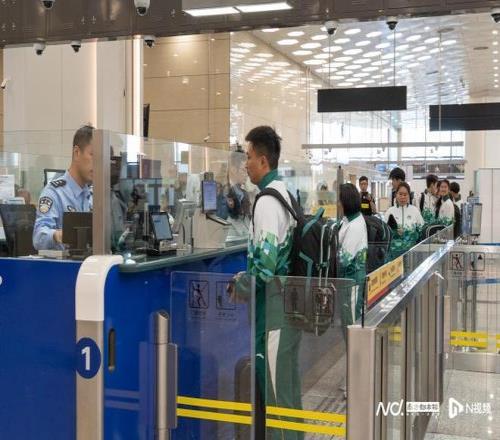 作為十五運會東道主的廣東、香港和澳門隊也于今日陸續抵達橫琴,中午12時許,澳門代表隊一行經橫琴口岸過關,十五運會網球競委會綜合協調處副處長蘇凱慈前往迎接并送上鮮花。
